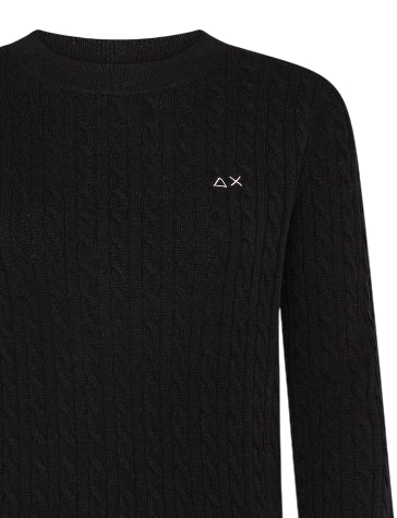 SUN68 DONNA MAGLIONE IN LANA E CASHMERE A TRECCE NERO