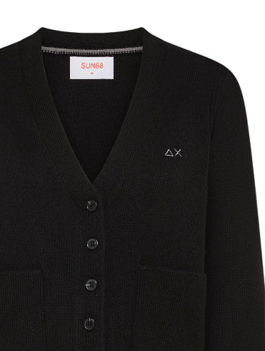 SUN68 CARDIGAN DONNA IN LANA E COTONE CON INSERTO COLORE NERO
