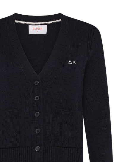 SUN68 CARDIGAN IN FILATO DI LANA E CASHMERE NAVY BLUE