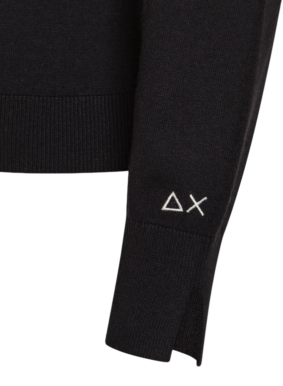 SUN68 MAGLIA DONNA GIROCOLLO LANA E COTONE NERO