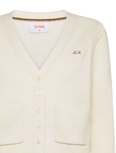 SUN68 CARDIGAN IN FILATO DI LANA E CASHMERE BIANCO PANNA