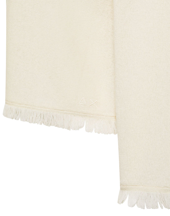 SUN68 MAGLIA DOLCEVITA IN LANA CON FRANGE BIANCO PANNA