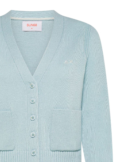SUN68 CARDIGAN IN FILATO DI LANA E CASHMERE COLORE ACQUA