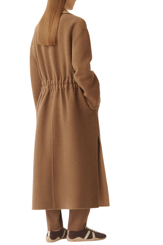 Raffinato cappotto con spacchi laterali realizzato in un pregiato double chevron soft, un tessuto fantasia sofisticato e avvolgente lavorato a mano in esclusiva per Fabiana Filippi. Il capo è impreziosito dal tubolare filo diamante interno polso. Prodotto interamente in Italia attraverso processi sostenibili.