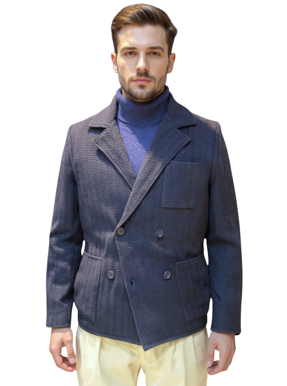 MARK MIDOR GIACCA MAGLIA DOPPIOPETTO SPIGATA IN LANA MERINO BLU