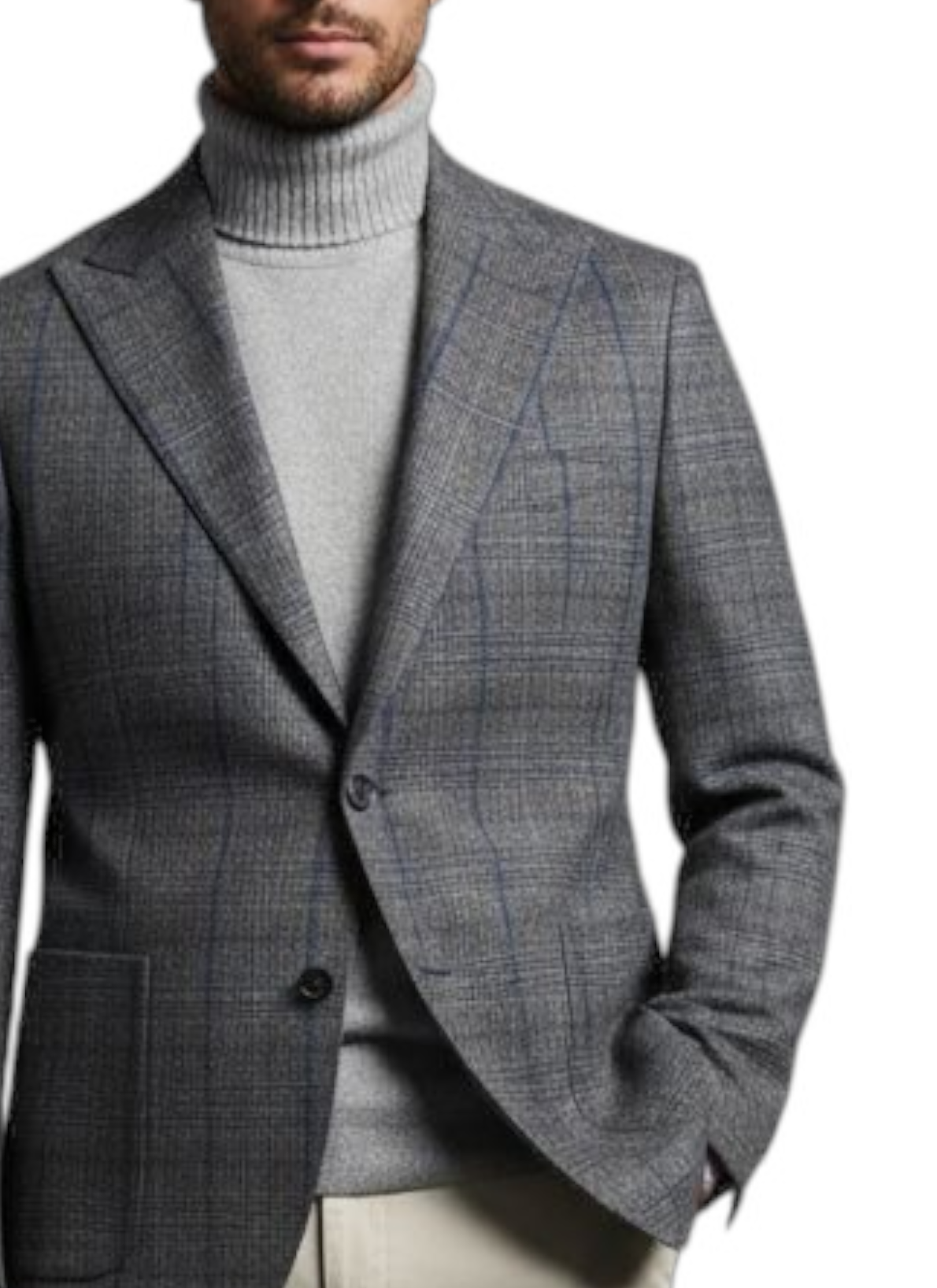 Realizzato in misto lana, questo blazer monopetto a due bottoni presenta un sofisticato motivo scozzese grigio tono su tono con una finitura leggermente blu per un look raffinato ma casual. Novità della collezione autunno inverno Mark Midor presenta un classico revers a lancia, le tasche inferiori a toppa, il taschino superiore a filetto sul petto e le tasche interne aggiungono un'eleganza funzionale. Che sia indossato in modo elegante o casual, questo blazer è un capo essenziale e senza tempo.