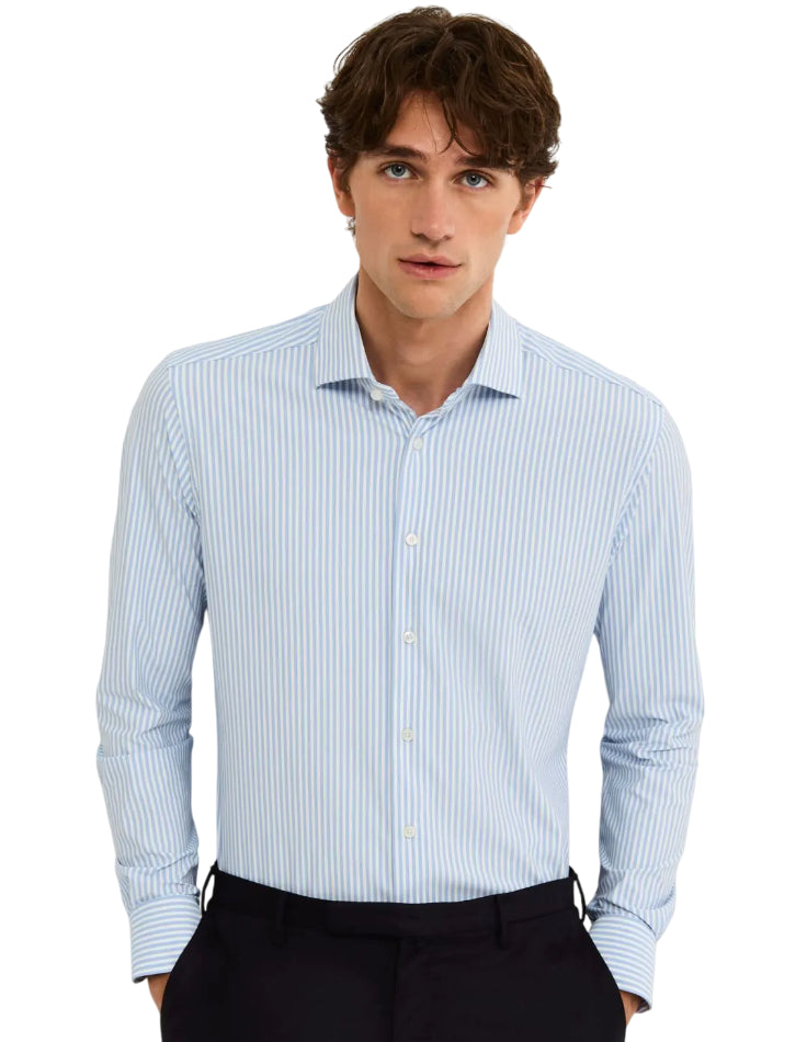 XACUS CAMICIA ACTIVE SHIRT COLLO FRANCESE RIGHE ARMATURATO CELESTE