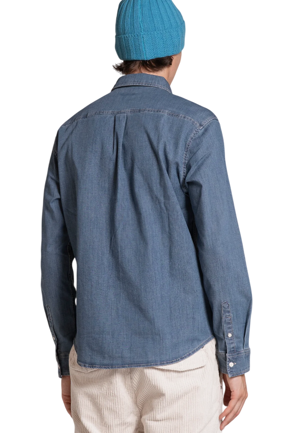 IMPURE CAMICIA CONNOR BUTTON DOWN IN DENIM WASH BLU