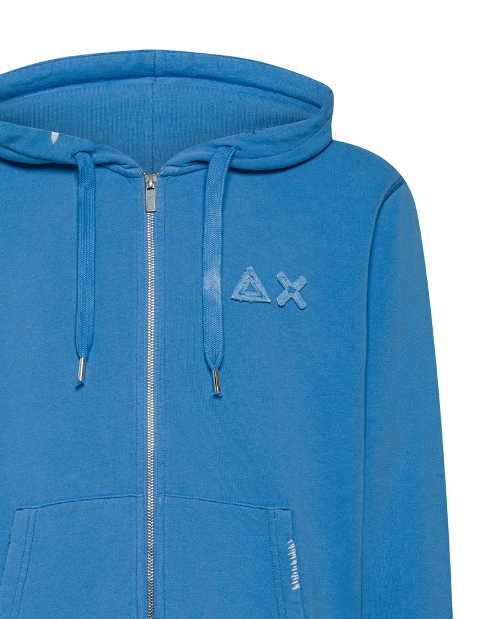 SUN68 FELPA HOODIE ZIP VINTAGE BROKEN FLEECE AVIO
