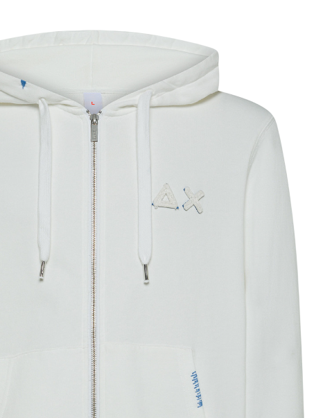 SUN68 FELPA HOODIE ZIP VINTAGE BROKEN FLEECE BIANCO PANNA