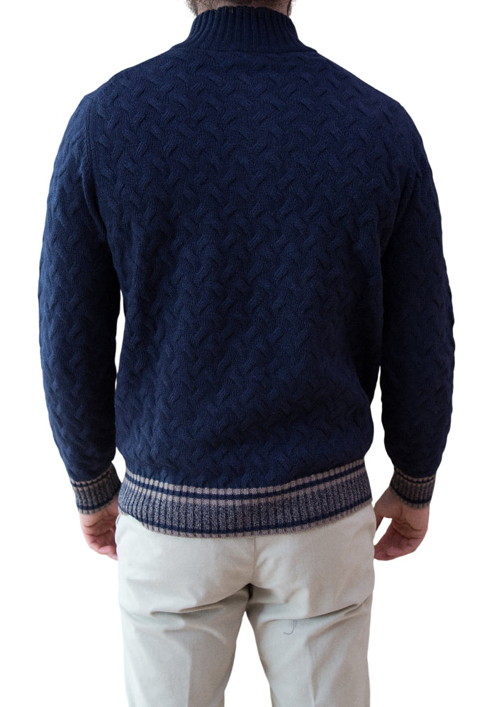 MARK MIDOR CARDIGAN FULL ZIP CON PROFILI E TOPPE BLU SCURO