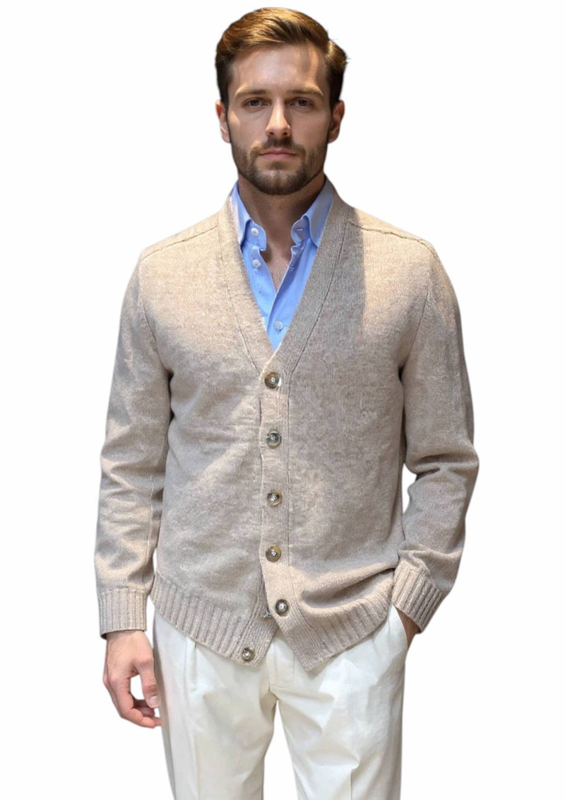 MARK MIDOR CARDIGAN UOMO IN LANA MERINO COLORE SABBIA