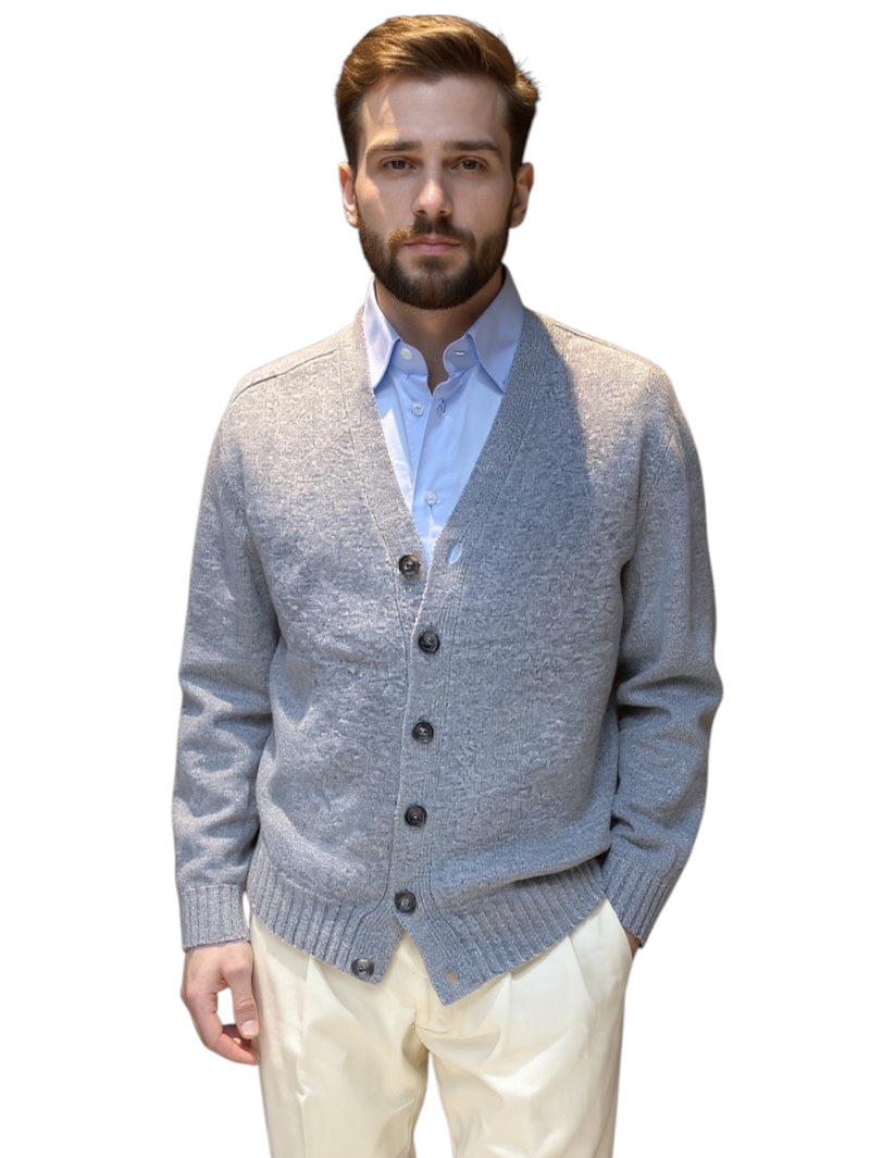 MARK MIDOR CARDIGAN UOMO IN LANA MERINO COLORE GRIGIO CENERE