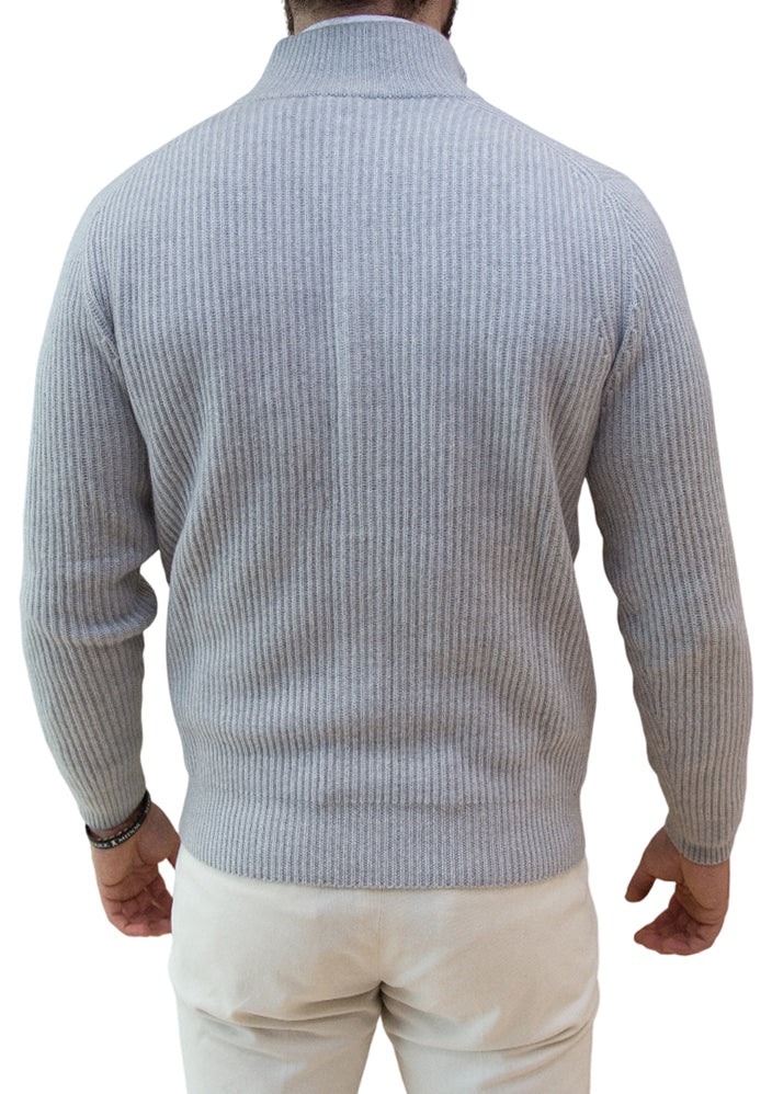 MARK MIDOR CARDIGAN IN CASHMERE A COLLO ALTO GRIGIO CHIARO
