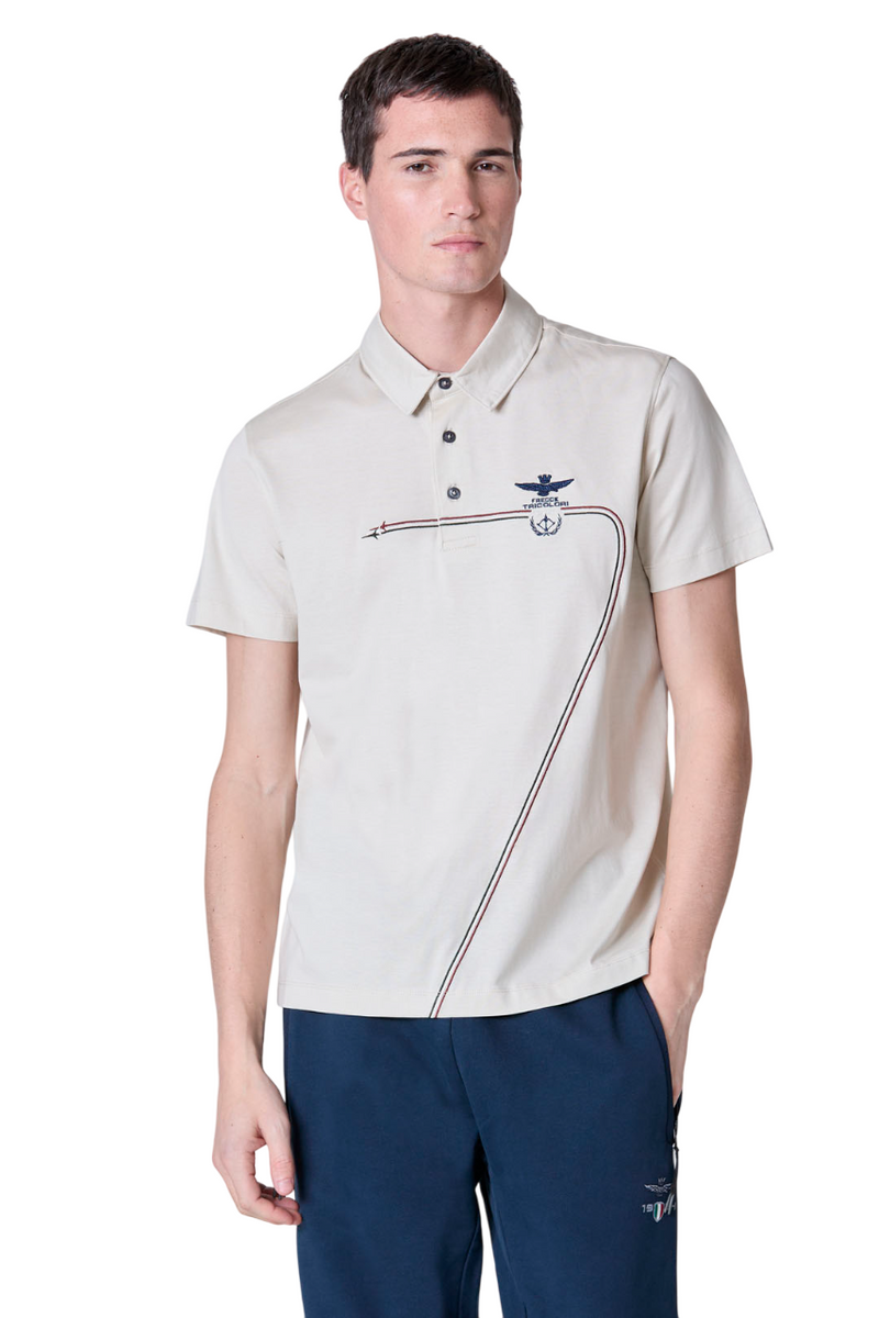AERONAUTICA MILITARE POLO IN JERSEY CON SCIE TRICOLORI GHIACCIO