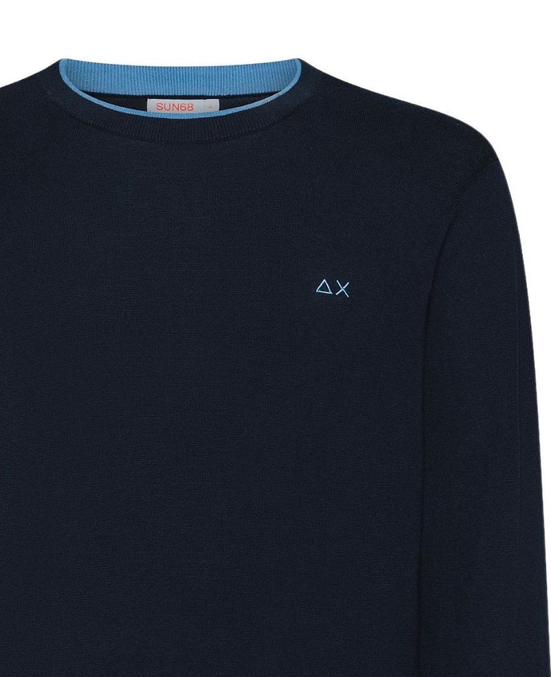 SUN68 UOMO MAGLIA SWEATER NECK DOUBLE RIB NAVY BLUE
