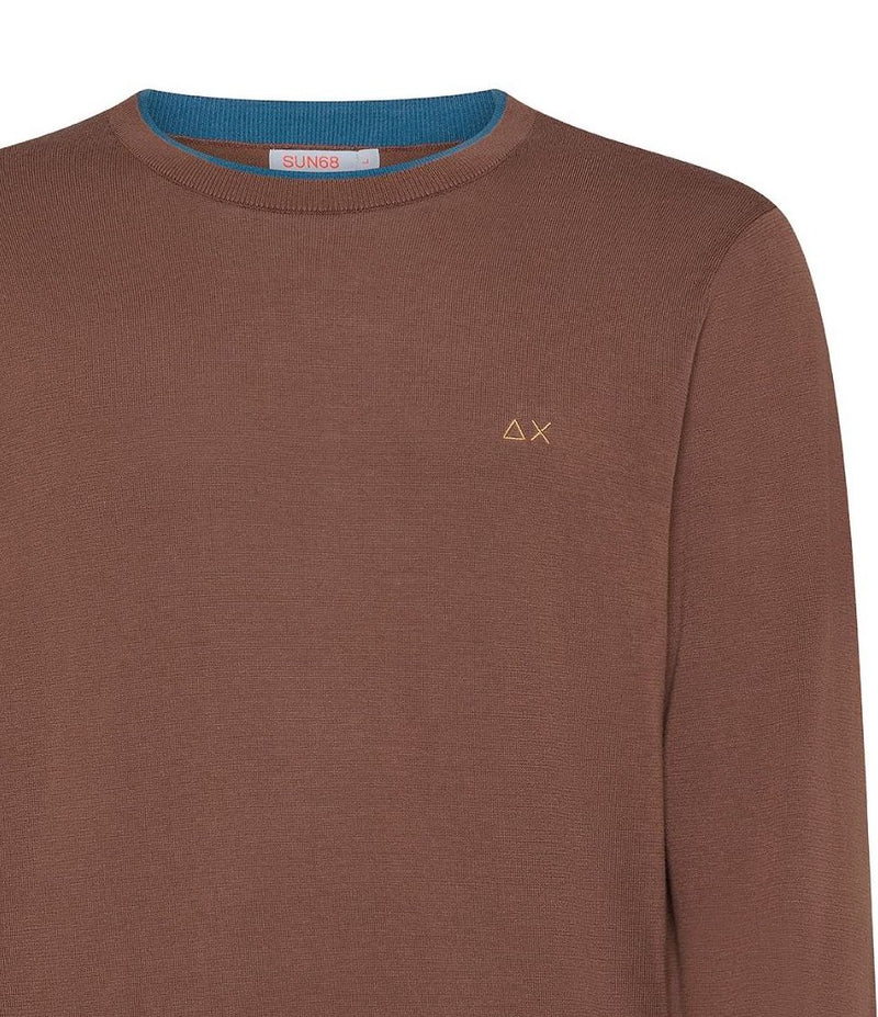 SUN68 UOMO MAGLIA SWEATER NECK DOUBLE RIB MARRONE