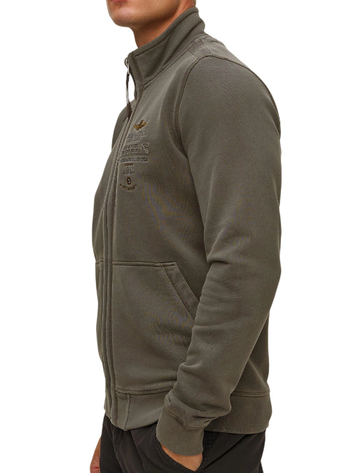 AERONAUTICA MILITARE FELPA CON FULL ZIP E RICAMI BELUGA GREY