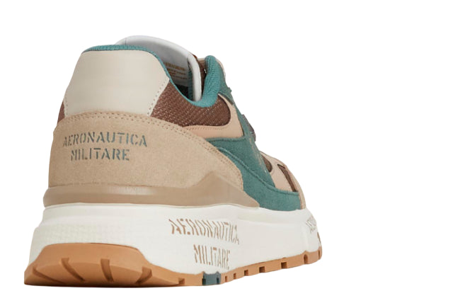 AERONAUTICA MILITARE SNEAKERS RUNNING IN MESH E PELLE BEIGE E VERDE