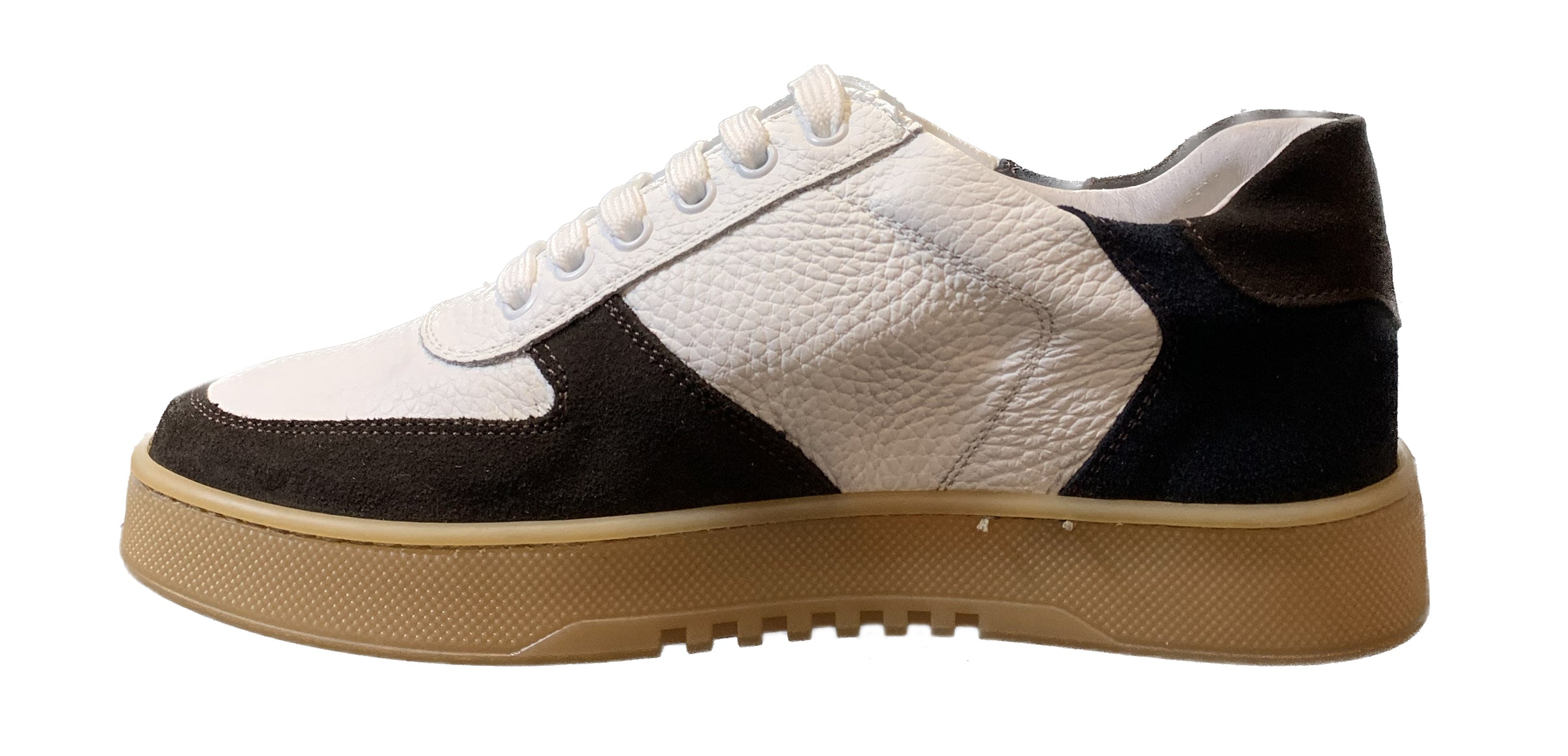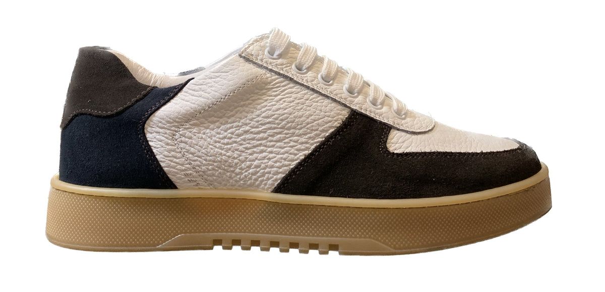 Le sneaker New York in 3 colori sono una novità assoluta della collezione ai 23/24 di Mark Midor. Un prodotto Made in Italy versatile che arricchisce il tuo guardaroba per il tempo libero. Il modello ha un design classico e si caratterizza per il mix sofisticato di materiali tomaia e punta in pelle bottolata bianca e pannelli laterali e tallone rifiniti in camoscio color blu e marrone. La para e la suola sono in morbida gomma bianca. Leggerezza e aderenza su tutte le superfici per una sneakers dal design e dalla manifattura totalmente italiana.