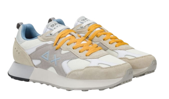 SUN68 SNEAKERS UOMO JAKI OUTDOOR IN MESH E SUEDE COLORE BIANCO PANNA