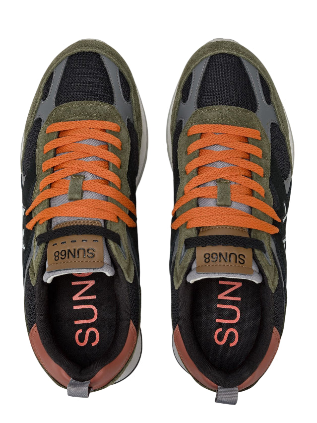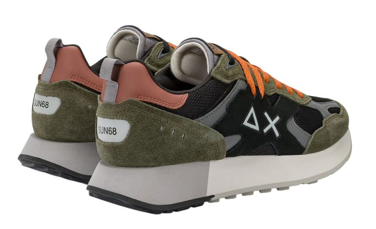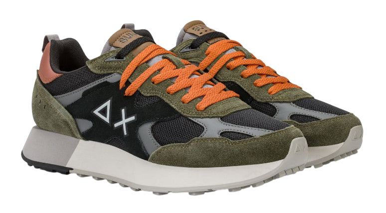 SUN68 SNEAKERS UOMO JAKI OUTDOOR IN MESH E SUEDE COLORE MILITARE SCURO