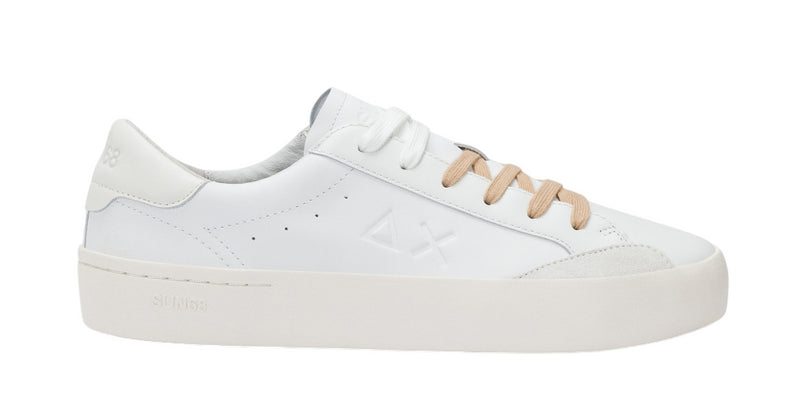 SUN68 SNEAKERS STREET LEATHER BIANCO BIANCO PANNA