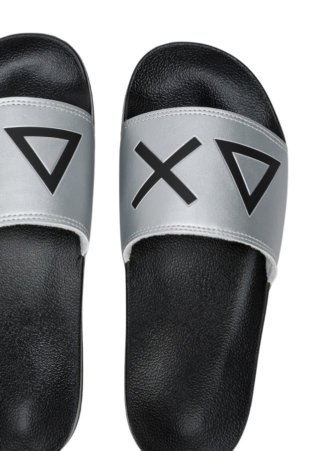SUN68 SLIPPERS LOGO NERO ARGENTO