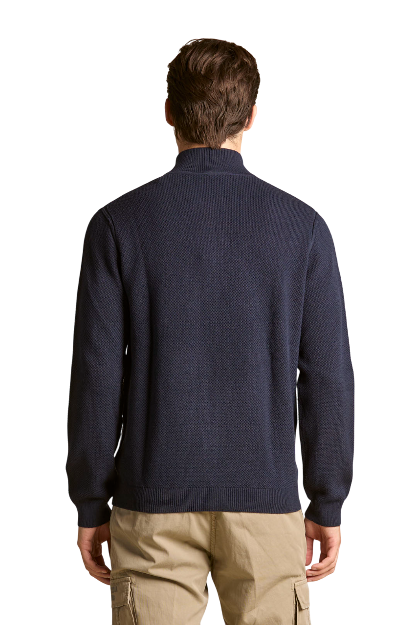 Questa maglia in misto lana e cotone unisce comfort e funzionalità in un design che richiama lo stile di una giacca. La lavorazione in maglia punto riso, calda e strutturata, è valorizzata da una vestibilità regolare e dettagli curati. L'apertura centrale è progettata per offrire la scelta tra due modalità di chiusura: zip o bottoni per adattarsi al tuo stile e alle tue esigenze quotidiane.