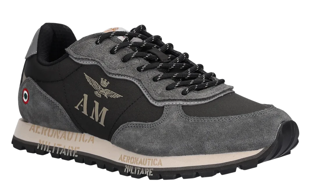 AERONAUTICA MILITARE SNEAKERS IN TESSUTO E PELLE SCAMOSCIATA JET BLACK