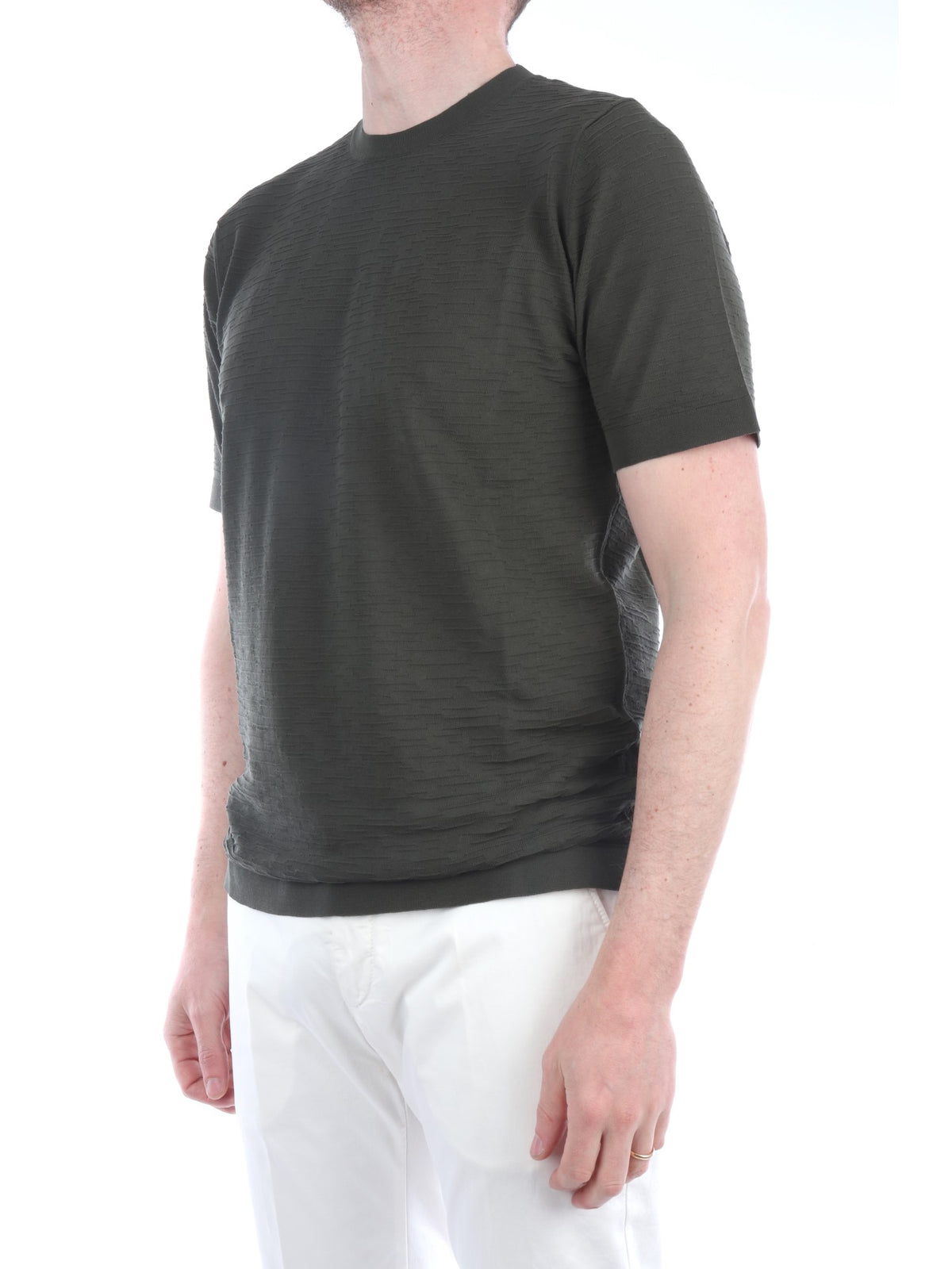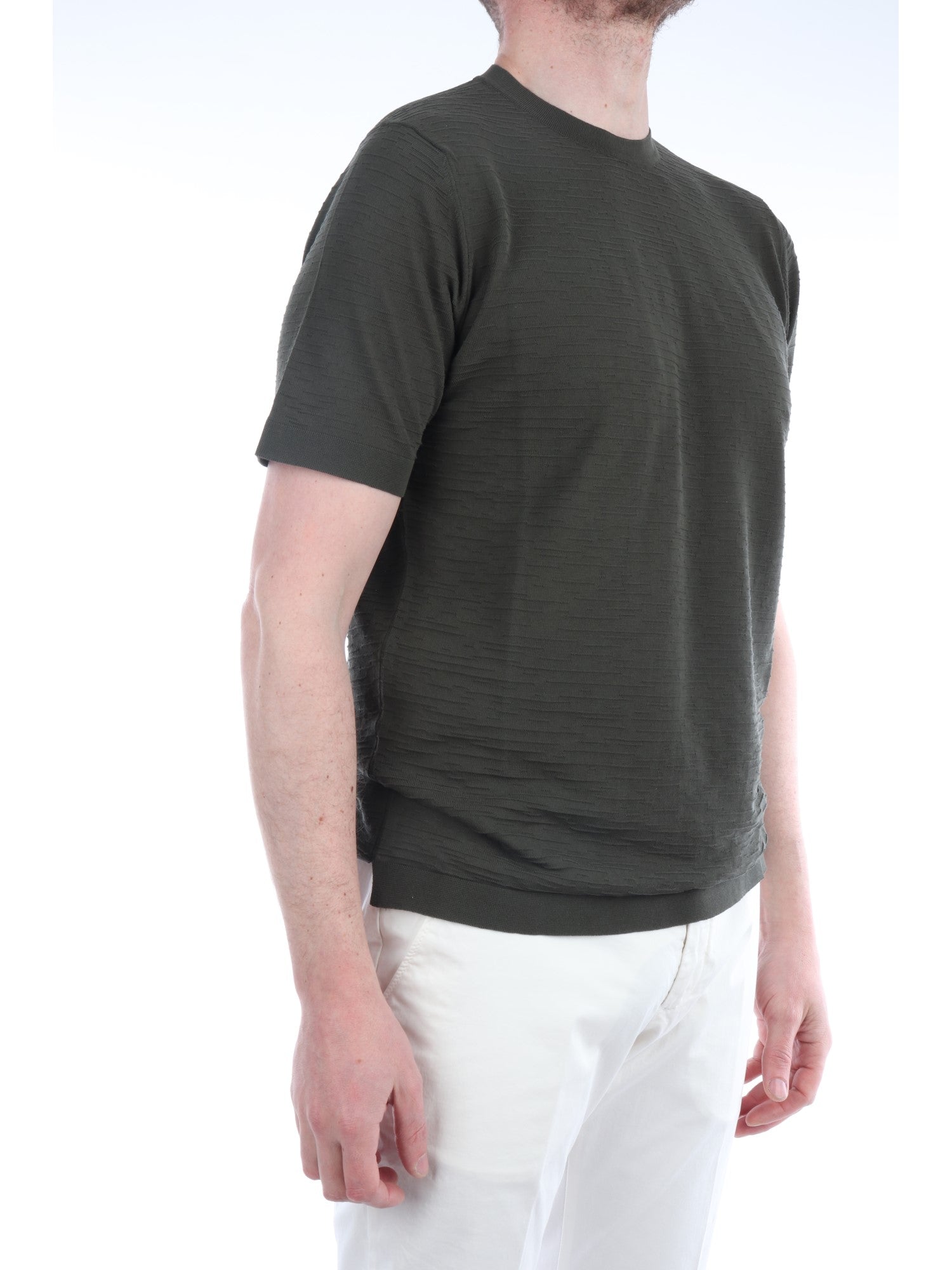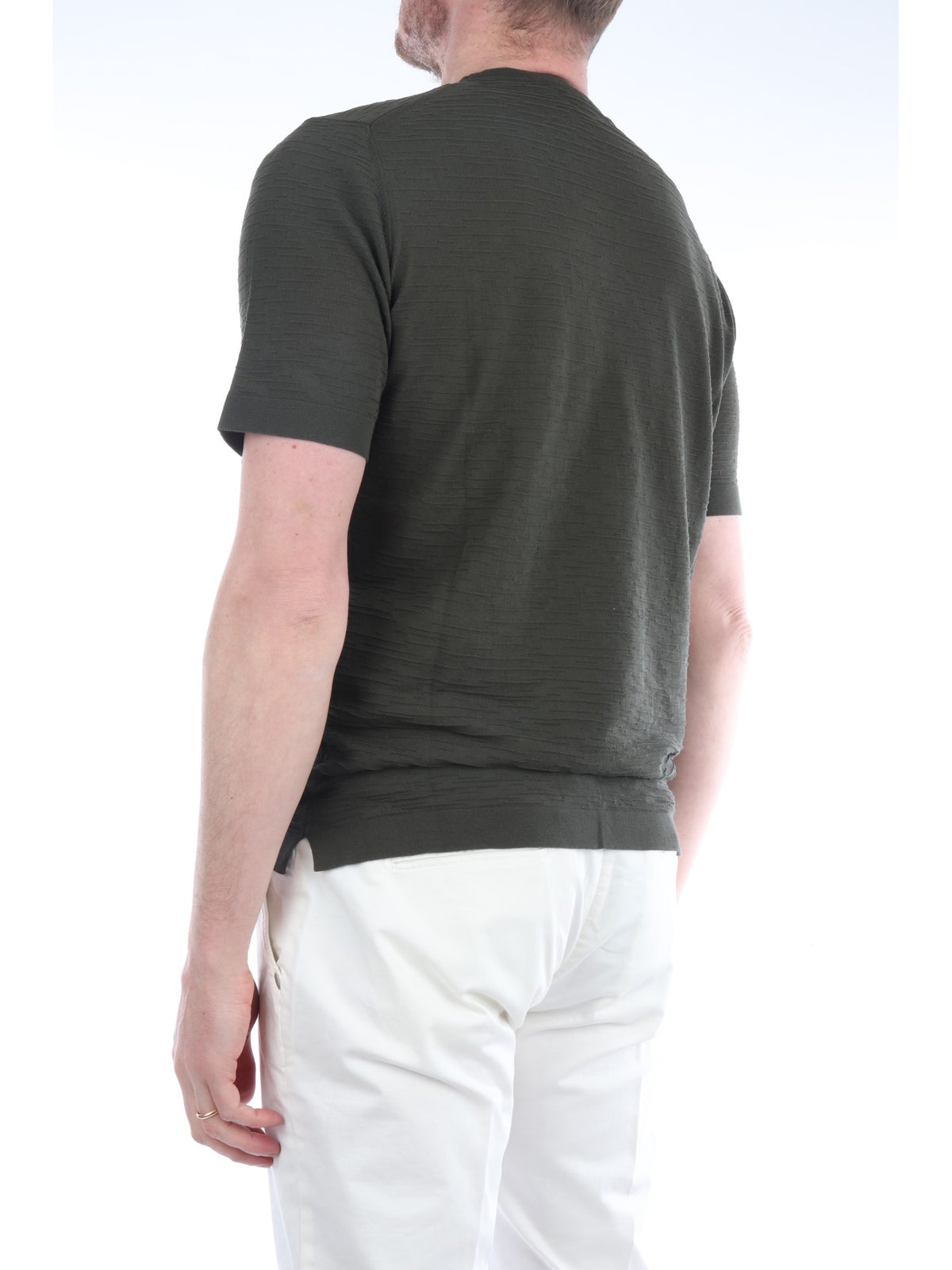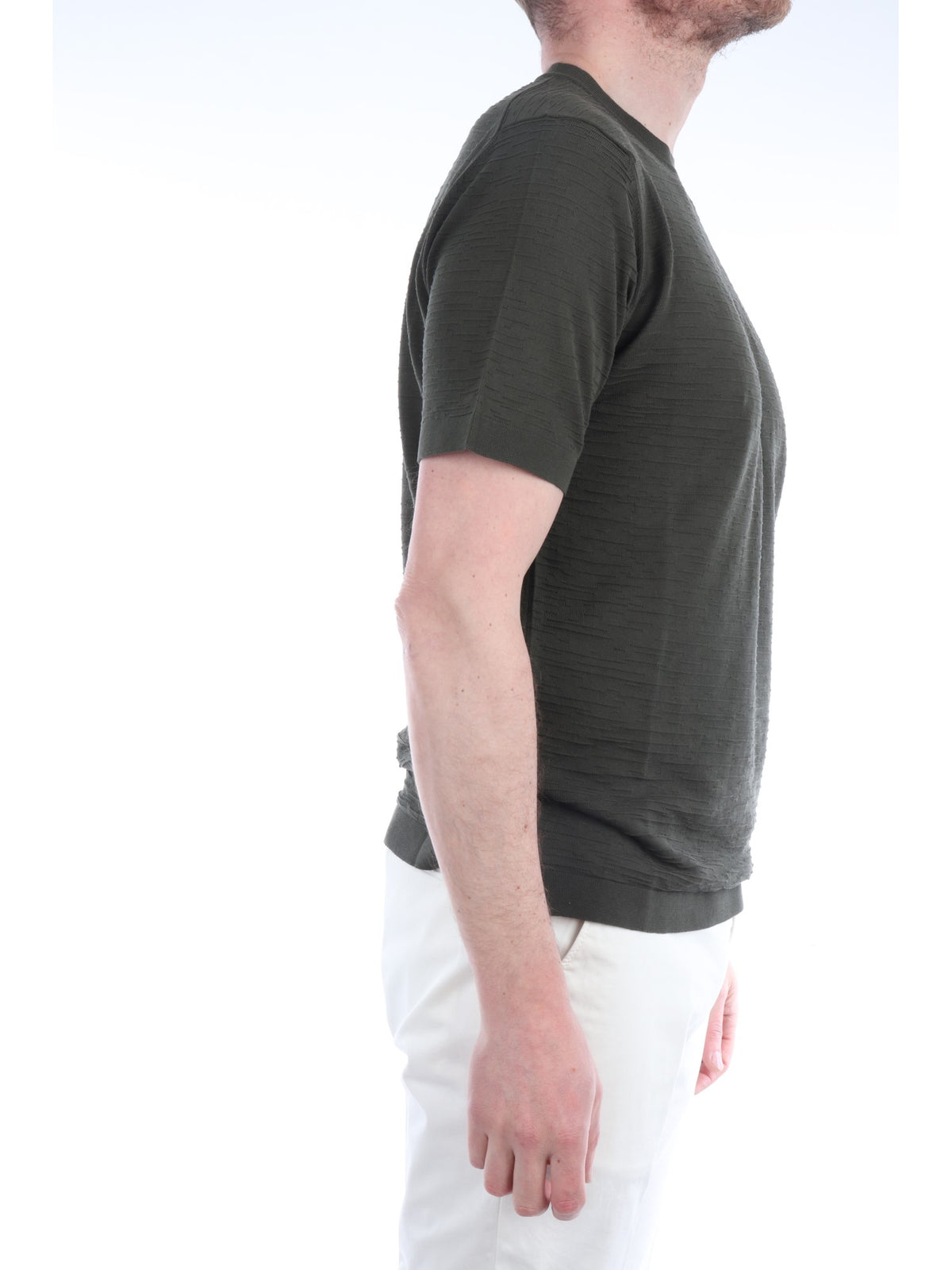 Le t-shirt firmate Filippo De Laurentiis si contraddistinguono per la pregiata lavorazione dei tessuti che rendono questi capi unici e ideali per l'uomo che non vuole rinunciare allo stile e all'eleganza anche indossando una semplice maglietta. Realizzata in cotone al 100% ha una trama tessuto a rilievo e a righe, sottili costine sul girocollo e sul fine manica. Il fondo è il verde militare e per questo il prodotto è versatile e idoneo ad un abbinamento sia sportivo che casual se abbinato ad un blazer o ad un pantalone classico. Il modello in foto è alto 182 cm e indossa la taglia 50.