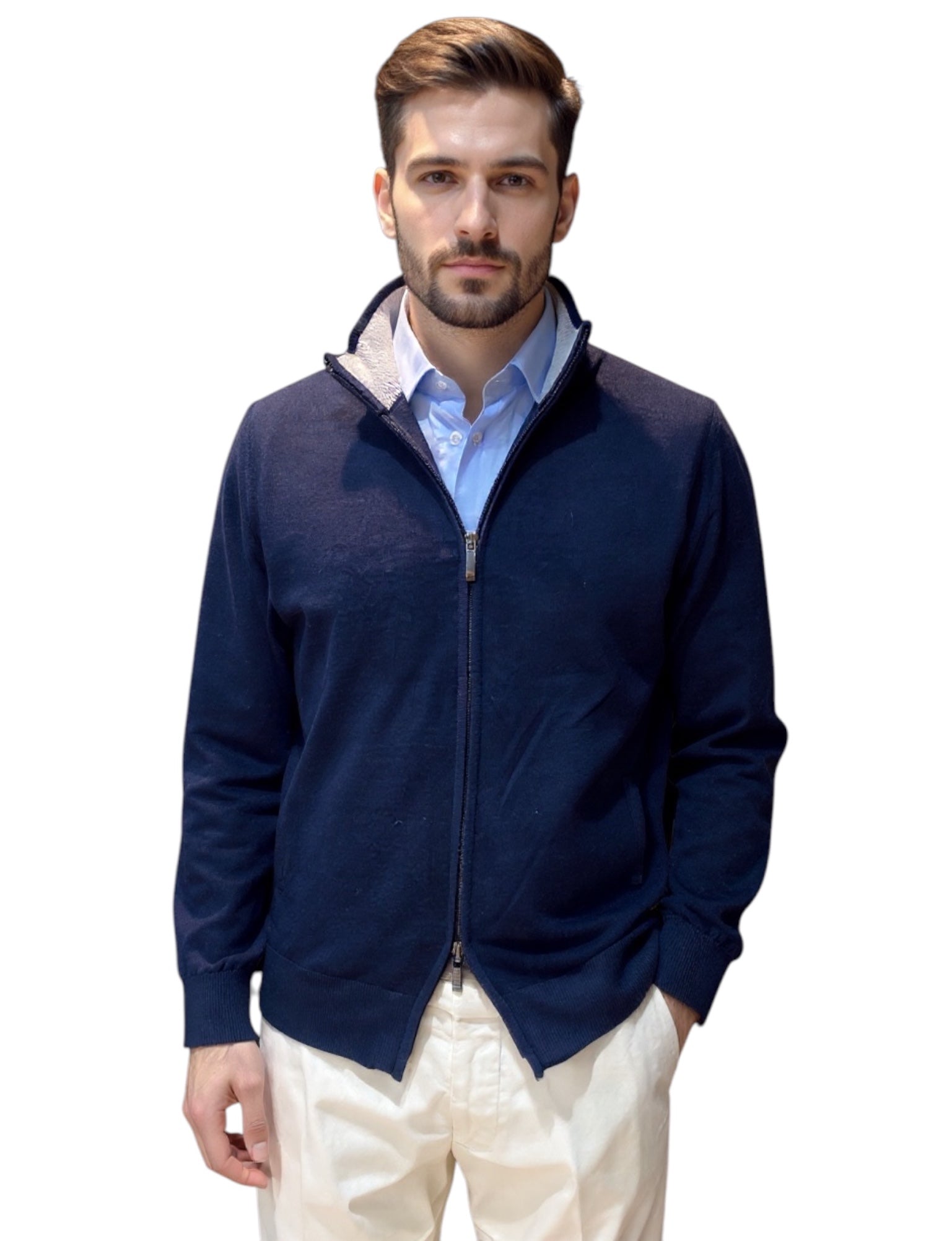 MARK MIDOR CARDIGAN FULL ZIP 100% LANA MERINO EXTRAFINE BLU NAVY