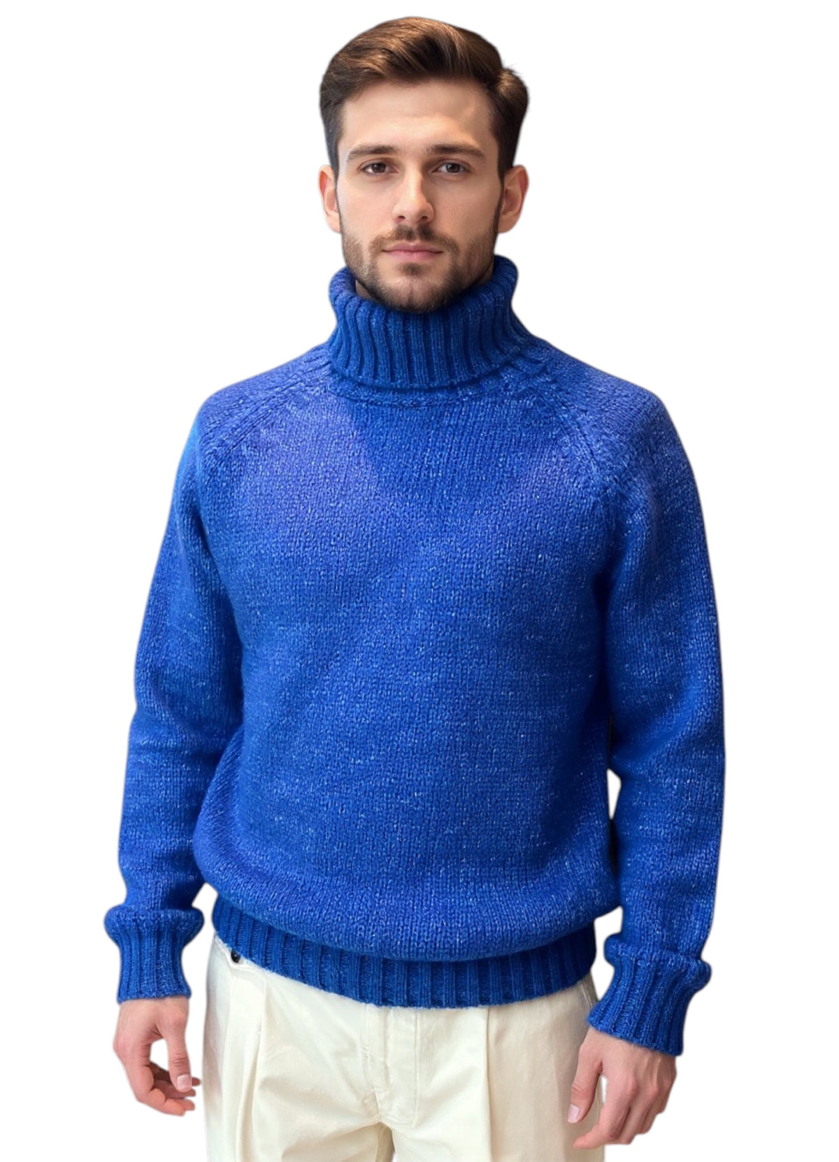 MARK MIDOR MAGLIONE A COLLO ALTO IN MISTO LANA ALPACA CASHMERE COLORE BLU ROYAL