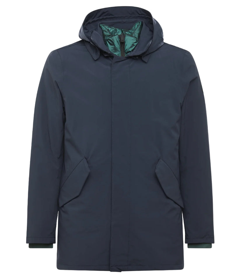• Capo “3 in 1” studiato per le 4 stagioni in tessuto tecnico con piumino interno staccabile trapuntato con isolante tecnico “PRIMALOFT”.