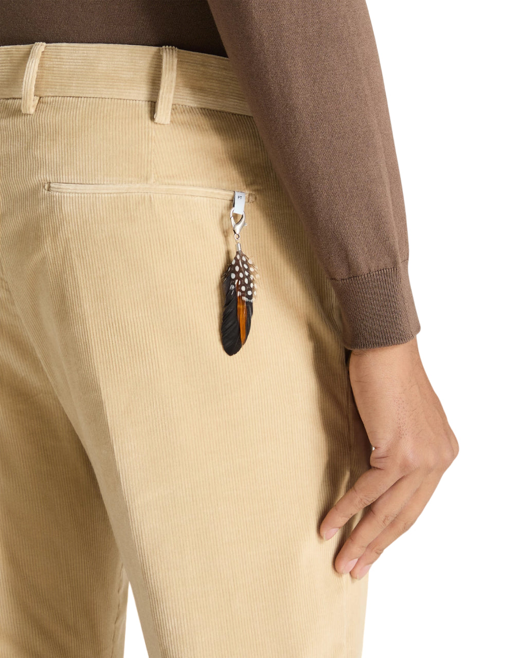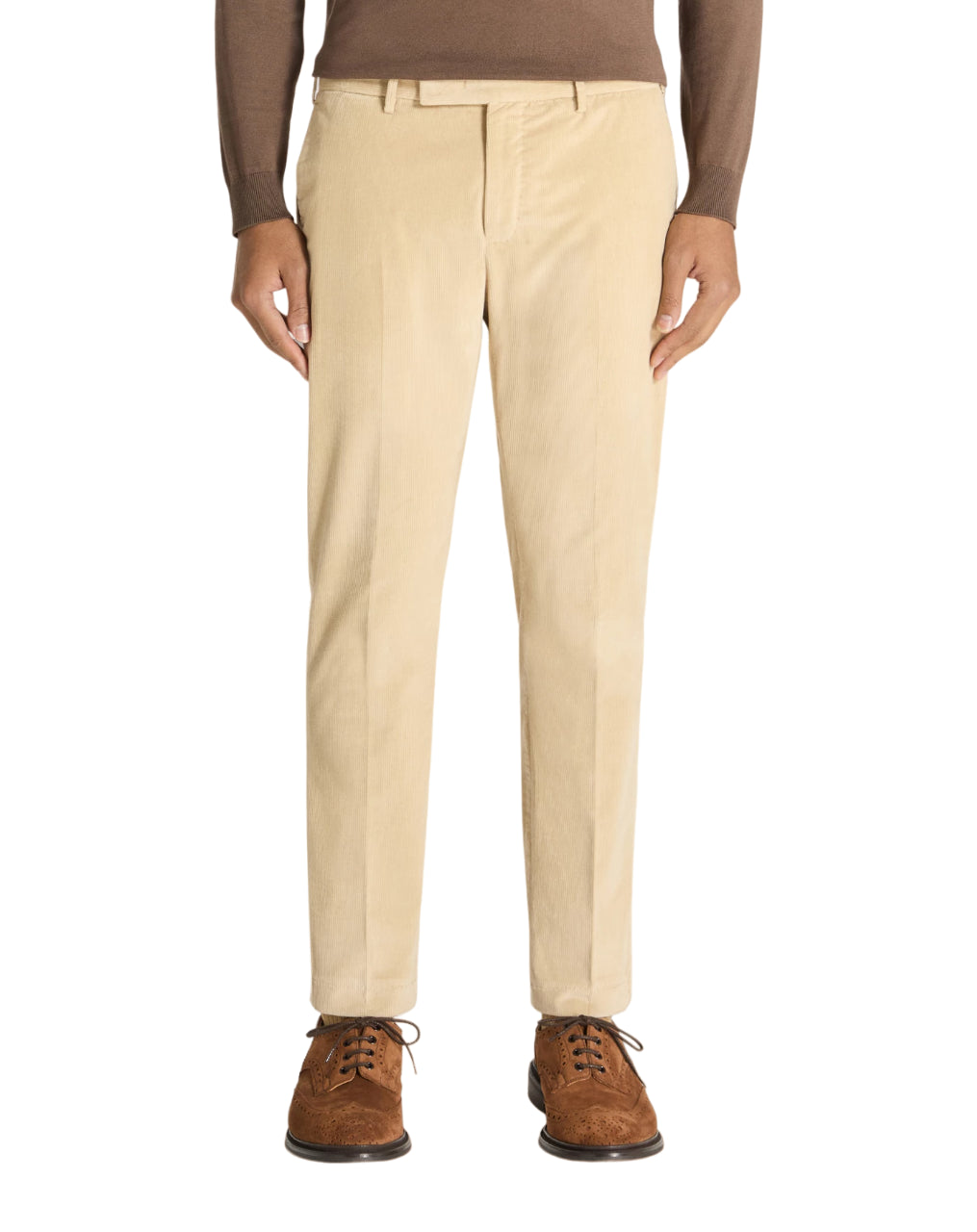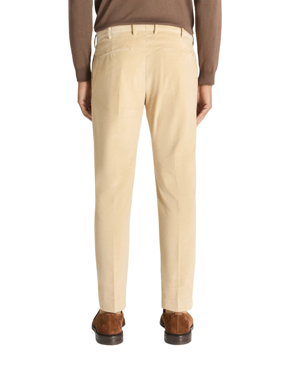 Pantaloni in velluto di cotone stretch con coste a rilievo, un tessuto morbido, strutturato e resistente, perfetto per la stagione. Con bacino pulito e linea super slim, in variante beige caldo sono perfetti per completare lo stile dei look casual ed eleganti.