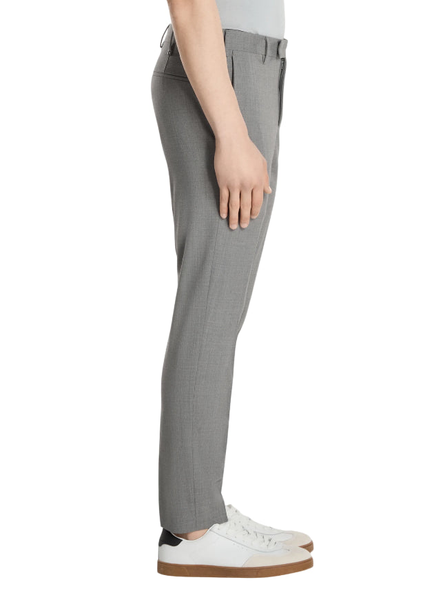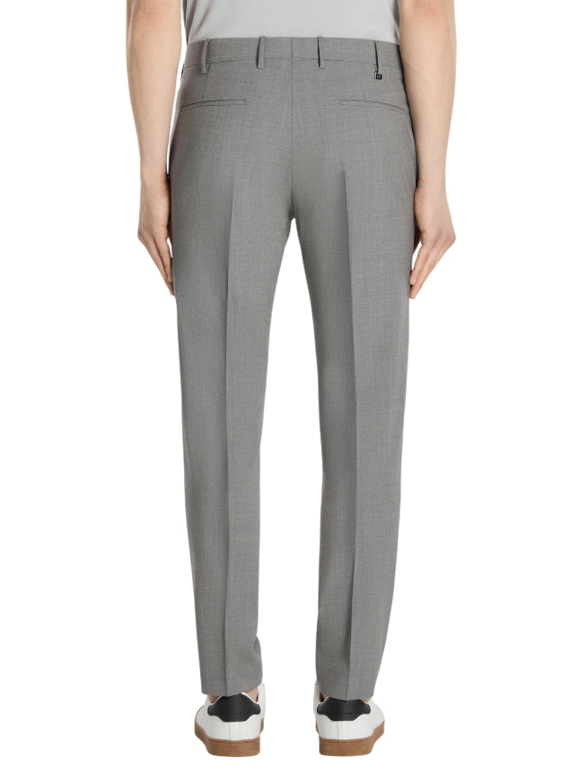 Pantaloni in lana vergine b-stretch tropical, un tessuto in armatura tela, fresca e adatta alla stagione. Con bacino pulito e linea super slim, hanno un design essenziale e sartoriale. In variante grigio scuro per outfit dal carattere intenso e versatile.