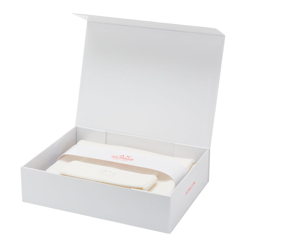 Un gioco di colori, trame avvolgenti e dettagli ricercati: il set da donna composto da berretto e sciarpa SUN68 trasforma la stagione più fredda in un'occasione di stile.