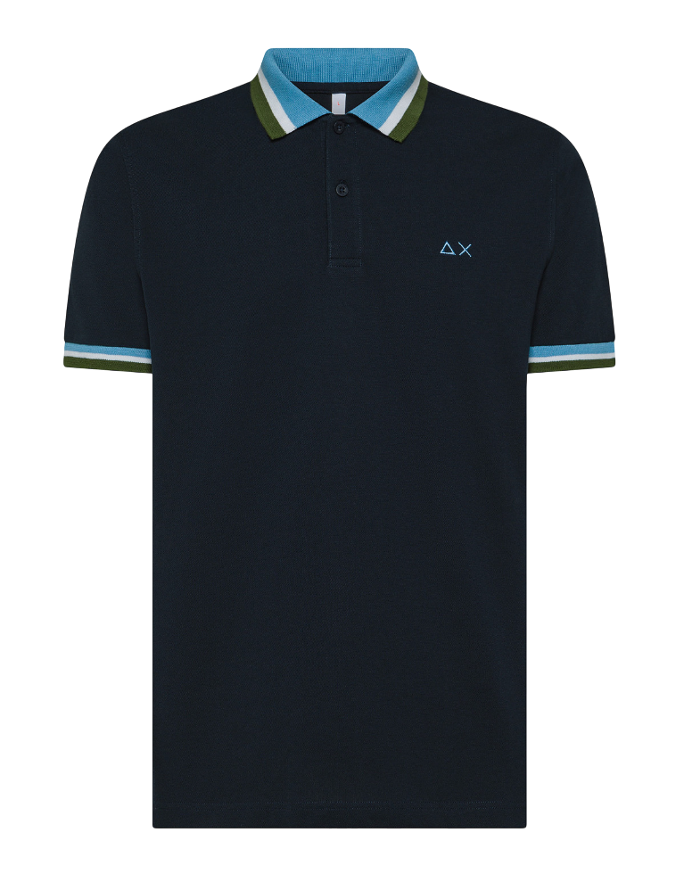 SUN68 POLO UOMO COLLAR MULTISTRIPES BLU NAVY