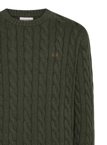 SUN68 UOMO MAGLIA GIROCOLLO IN MISTO LANA MILITARE SCURO