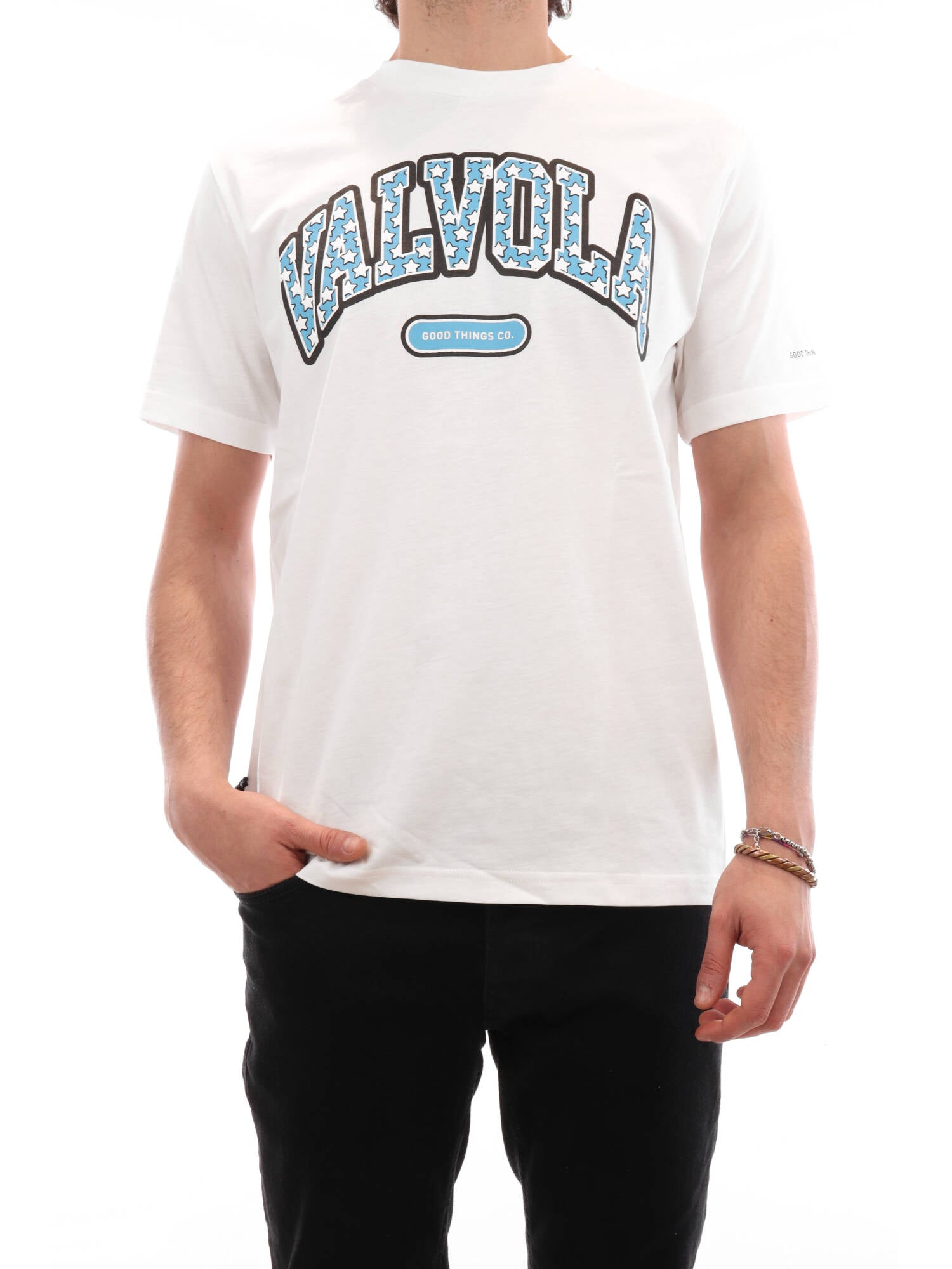 Valvola è un brand Made in Italy e quindi sinonimo di qualità e creatività. Il suo design moderno e contemporaneo spazia dai colori alle forme ed è impreziosito da materiali di prima qualità. Le t-shirt della nuova collezione primavera estate 22 sono tutte realizzate in morbido jersey di cotone con stampe gommate e spessorate sul fronte e sul retro. Il prodotto si presenta con collo arrotondato, maniche corte e una vestibilità regolare. Il modello in foto è alto 185 cm per un peso di 70 Kg e indossa la taglia S.