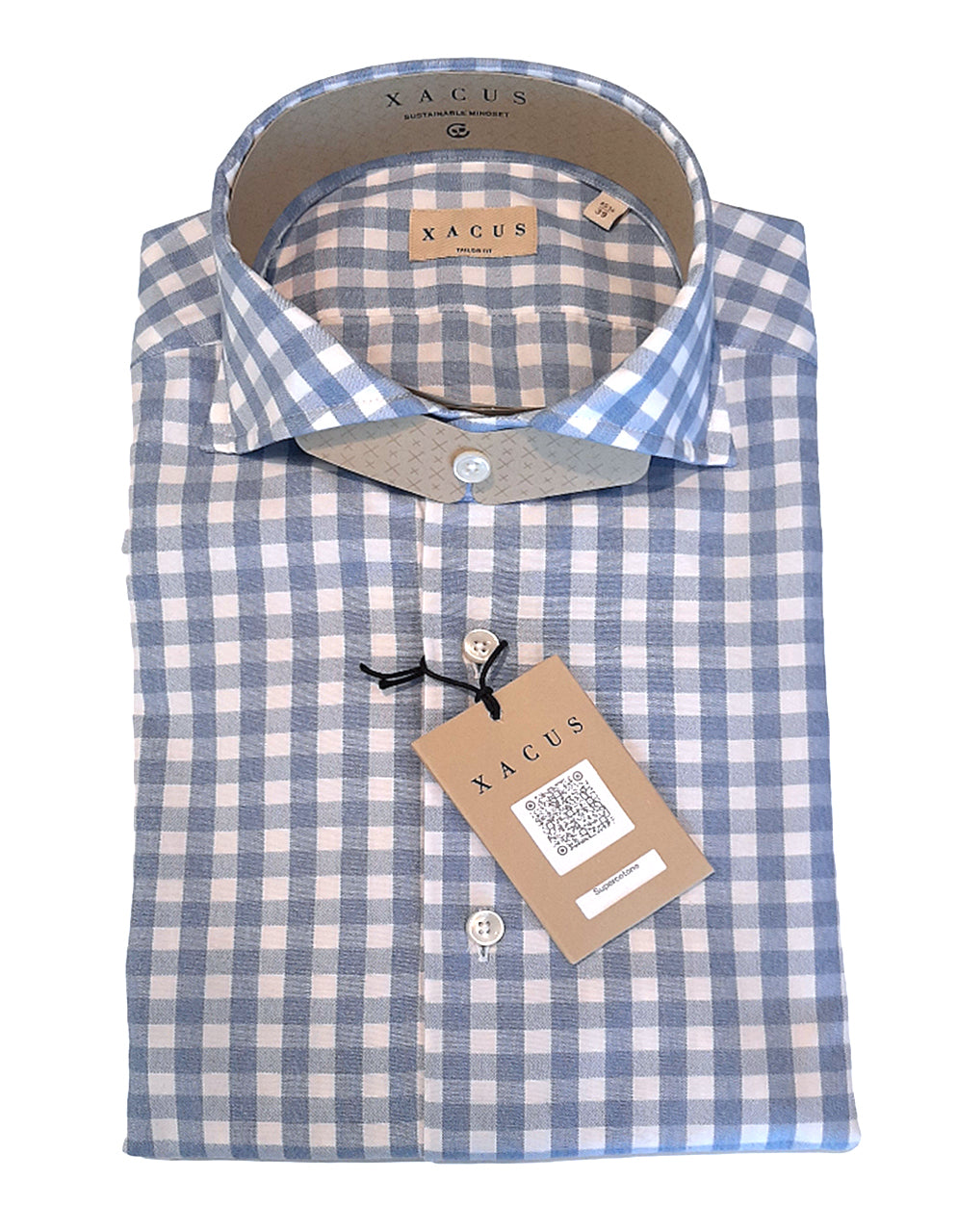 XACUS CAMICIA TAILOR WASHED A QUADRI BIANCO CELESTE