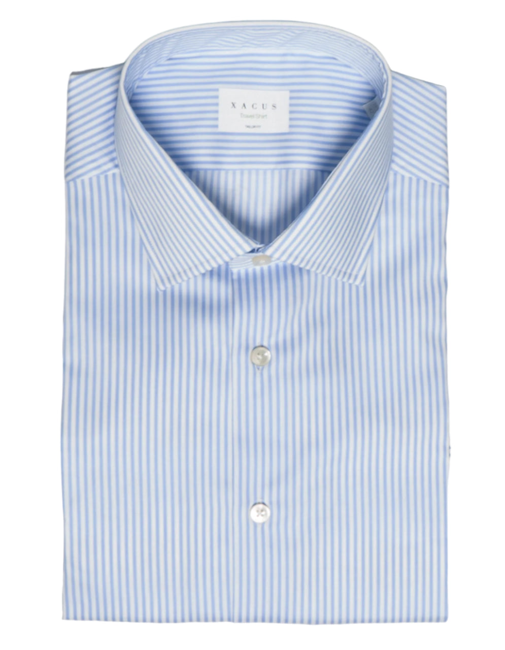 XACUS CAMICIA TRAVEL SHIRT TAILOR NO STIRO RIGHE BIANCO CELESTE
