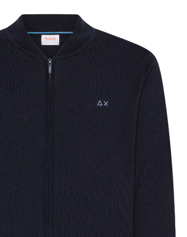 SUN68 UOMO CARDIGAN IN COTONE E LANA CON ZIP COLORE NAVY BLUE