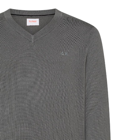 SUN68 UOMO MAGLIA IN LANA E COTONE CON SCOLLO A V COLORE GRIGIO SCURO