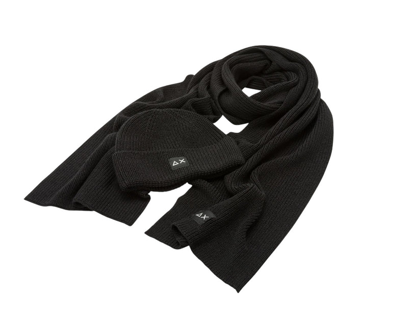 SUN68 BERRETTO E SCIARPA IN LANA COORDINATI COLORE NERO