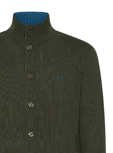 SUN68 CARDIGAN UOMO IN LANA E CASHMERE CON BOTTONI COLORE MILITARE SCURO