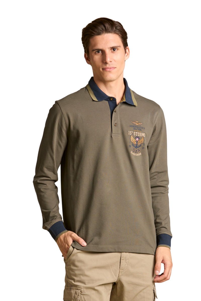 AERONAUTICA MILITARE POLO MANICHE LUNGHE REGULAR FIT IN COTONE DARK OLIVE