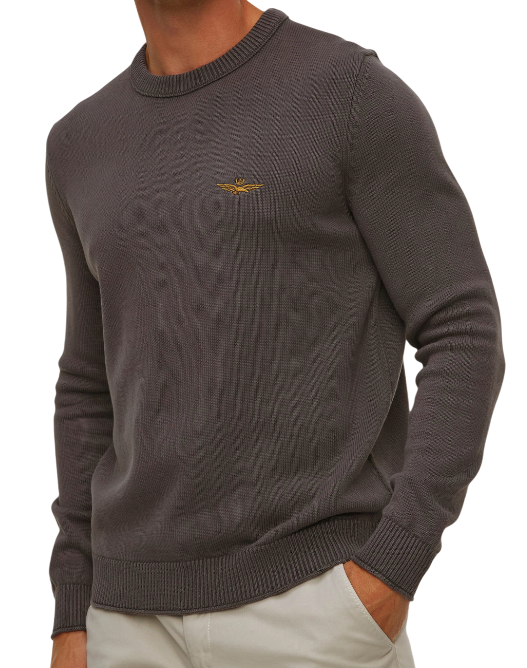 AERONAUTICA MILITARE MAGLIA GIROCOLLO IN COTONE STONE WASHED BELUGA GREY
