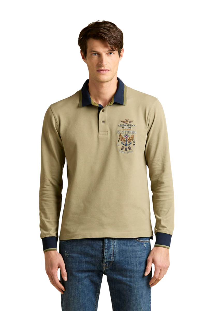 AERONAUTICA MILITARE POLO RICAMATA A MANICA LUNGA COLONIAL BEIGE
