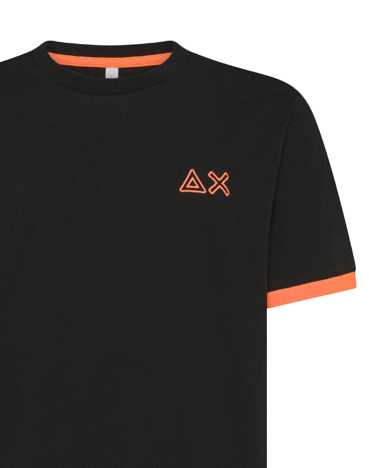 SUN68 T-SHIRT PIQUET LOGO FLUO NERO